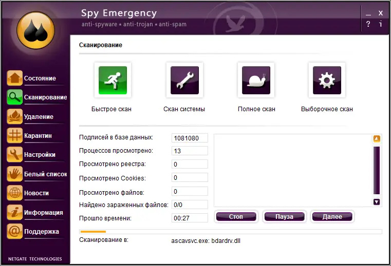 Как пользоваться NETGATE Spy Emergency