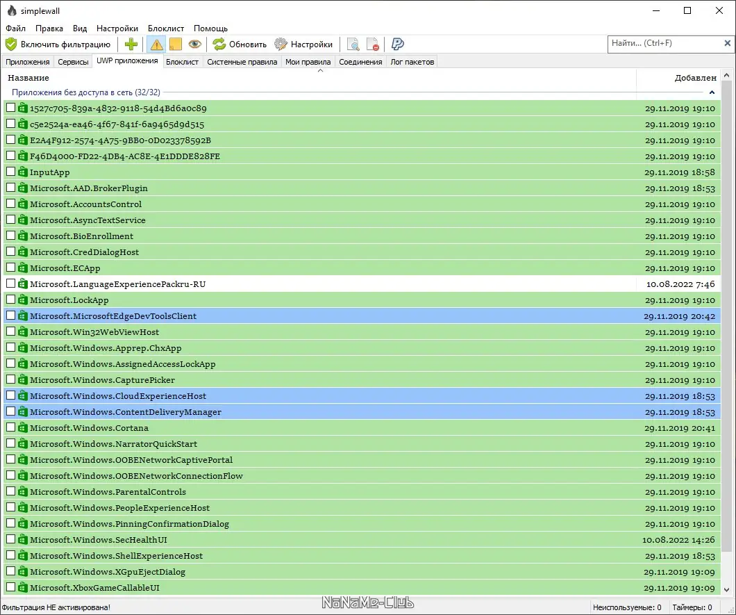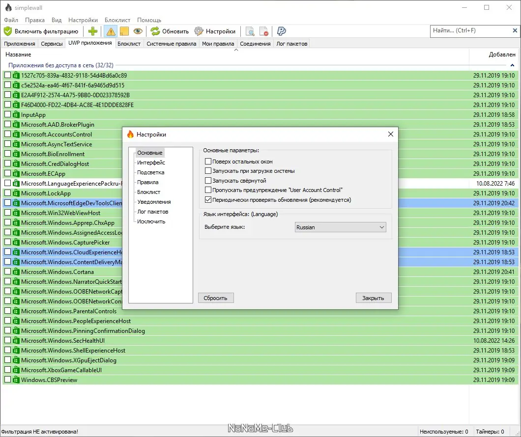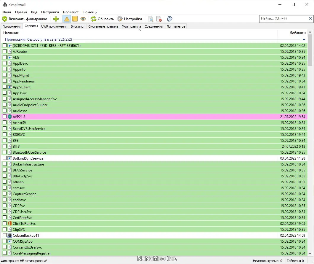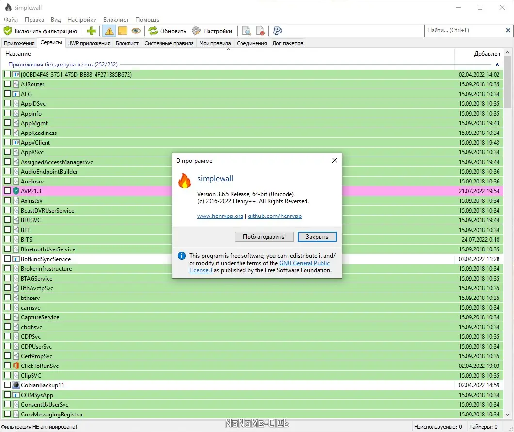 simplewall — это легковесный и эффективный firewall для Windows, позволяющий контролировать сетевую активность приложений через фильтрацию трафика по белому или черному списку с использованием WFP.