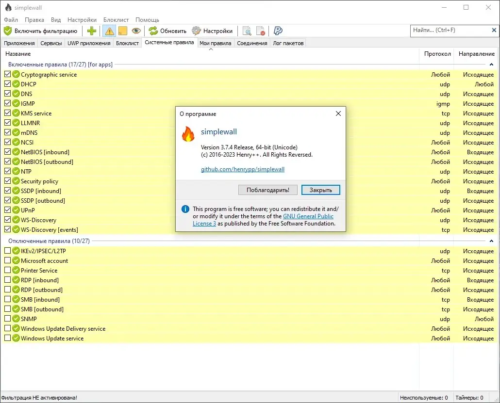 Прозрачность и открытость кода делает simplewall доверенным решением для тех, кто заботится о безопасности и контроле над системой.