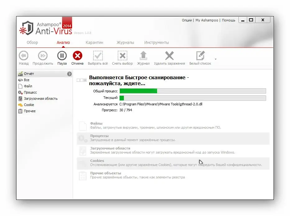 Высокая производительность и надёжная защита совмещены в Ashampoo Anti-Virus — решении, способном обезопасить систему без замедления работы компьютера. Программа обеспечивает круглосуточный мониторинг, блокирует вирусы, трояны, шпионское ПО и фишинговые атаки, используя передовые технологии сканирования. При этом она остаётся практически незаметной для пользователя, не вмешиваясь в повседневные задачи.