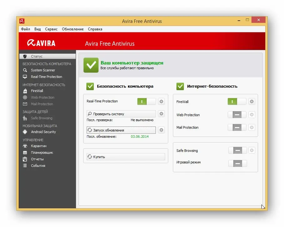Avira AntiVirus сочетает высокую эффективность с минимальным влиянием на систему. Программа регулярно обновляется, поддерживает современные стандарты защиты и адаптирована под актуальные версии Windows, включая Windows 10. Несмотря на широкий функционал, бесплатная версия остаётся легковесной и не требует мощного железа. Однако некоторые функции, такие как родительский контроль, ограничены в локализованных сборках. В версии для русскоязычных пользователей отсутствует интеграция с SocialShield, что снижает возможности контроля за активностью детей в социальных сетях.