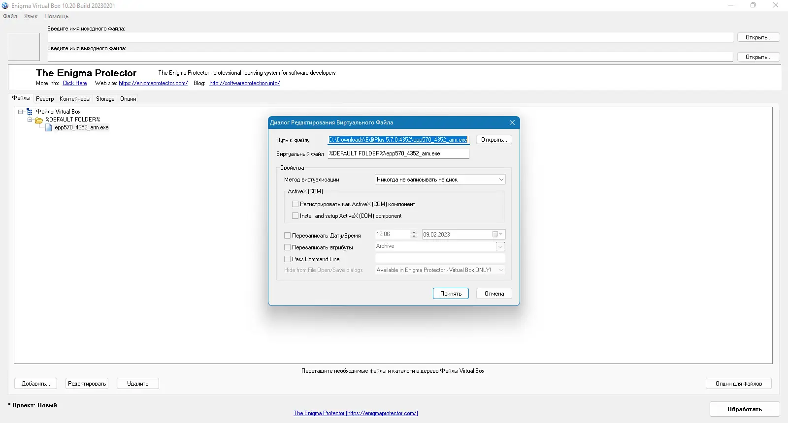 Как пользоваться Enigma Virtual Box