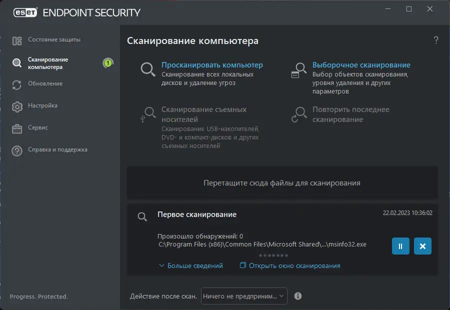 Установка и настройка ESET Endpoint Antivirus осуществляется через централизованную консоль управления. Администратор может выполнить массовую установку на устройства в сети, используя удалённое развёртывание. После установки программа автоматически применяет заданные политики безопасности, включая режим реального времени, сканирование по расписанию и контроль сменных носителей. Пользователям доступен интуитивный интерфейс, отображающий статус защиты, результаты проверок и рекомендации. Все события фиксируются в журналах, которые можно экспортировать или интегрировать с системами анализа безопасности (SIEM).