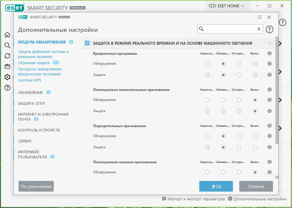 - Модуль HIPS с интеллектуальным режимом Smart Mode для контроля поведения приложений