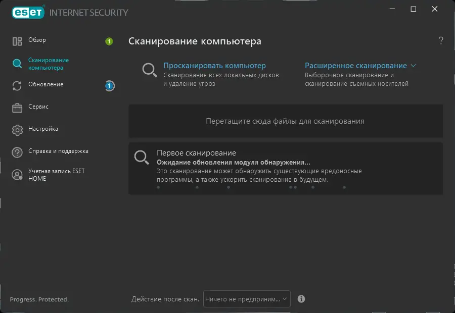После установки программа автоматически настраивается под текущую конфигурацию системы, активируя базовые режимы защиты. Пользователю доступен интуитивный интерфейс с централизованным управлением, где отображается статус безопасности, история событий и рекомендации по улучшению защиты. Для запуска полной проверки достаточно выбрать соответствующую опцию в главном меню, а настройки можно адаптировать под индивидуальные потребности — от выбора режима сканирования до управления правилами брандмауэра.