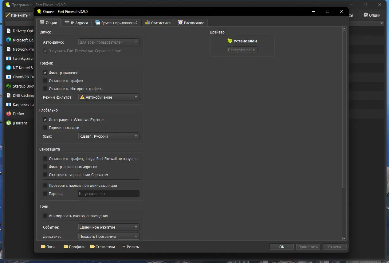 - Наличие собственного драйвера ядра на базе WFP обеспечивает высокую эффективность фильтрации