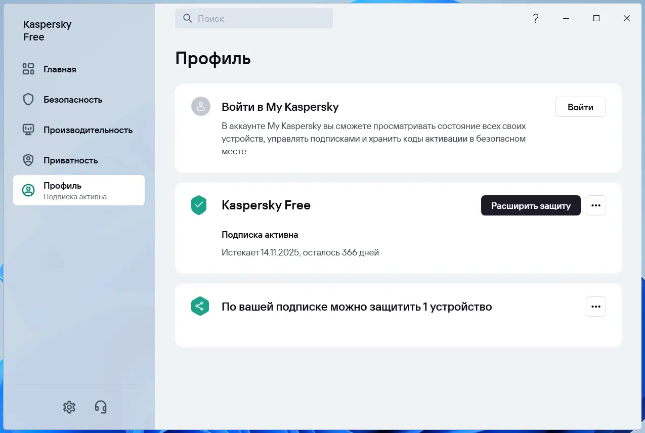 Kaspersky Free предлагает качественную защиту, не уступающую многим платным решениям. Программа поддерживает современные угрозы, включая шифровальщики и фишинг, и активно использует cloud-технологии для быстрого реагирования на новые вредоносные образцы. При этом она остаётся лёгкой и не перегружает систему.