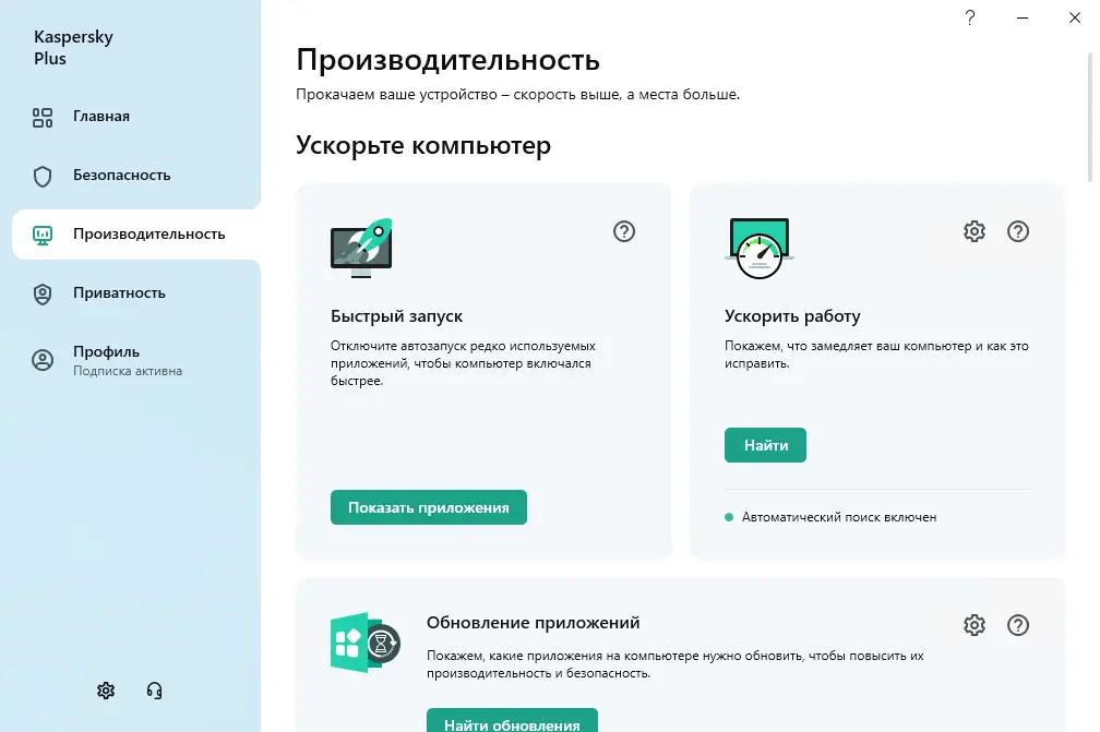 - Обеспечивается автоматическое резервное копирование важных данных и устранение уязвимостей в установленном софте