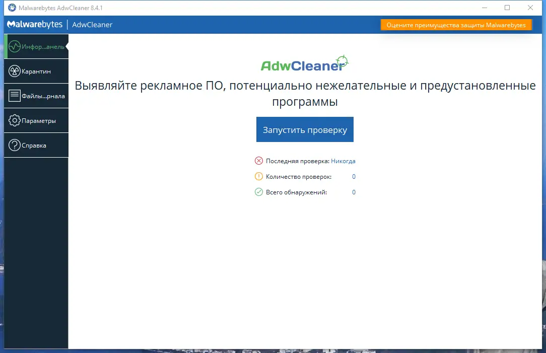 Как пользоваться Malwarebytes AdwCleaner