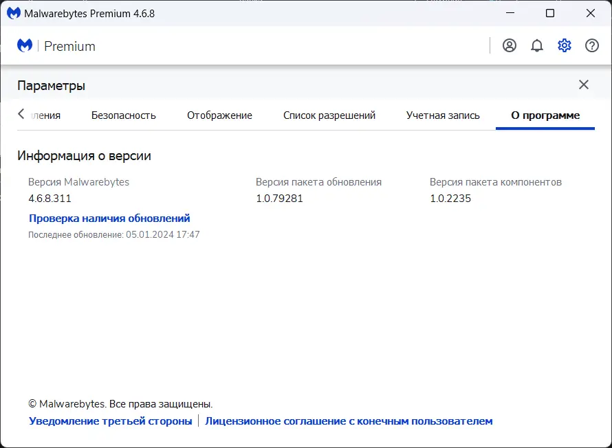 Malwarebytes Premium — это современное решение для комплексной защиты компьютера от вредоносного программного обеспечения, включая вирусы, трояны, шпионские и рекламные модули. Программа работает в фоновом режиме, обеспечивая надежную защиту в реальном времени и оперативно реагируя на угрозы. Её эффективность подтверждена многочисленными тестами и положительными отзывами пользователей по всему миру.