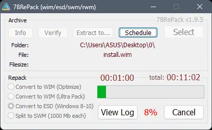 78RePack — это компактная утилита с графическим интерфейсом, предназначенная для конвертации и обработки архивов форматов Wim, ESD, SWM и RWM. Программа основана на библиотеке WimLib и не требует наличия DISM или Imagex, обеспечивая независимую работу с образами. С её помощью можно преобразовывать, распаковывать, проверять целостность и извлекать содержимое архивов, что делает её незаменимой при работе с установочными и загрузочными системами.