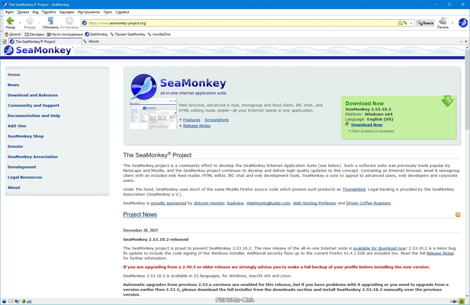 Программа доступна для бесплатного использования и регулярно обновляется разработчиками. Версию можно скачать с официального сайта в различных конфигурациях, включая полную установку и portable-сборку. Чтобы скачать браузер вместе с остальными компонентами, достаточно выбрать подходящий пакет для своей операционной системы. Поддержка Windows 7, 8.1, 10 и 11 позволяет использовать SeaMonkey на большинстве современных и устаревших компьютеров.
