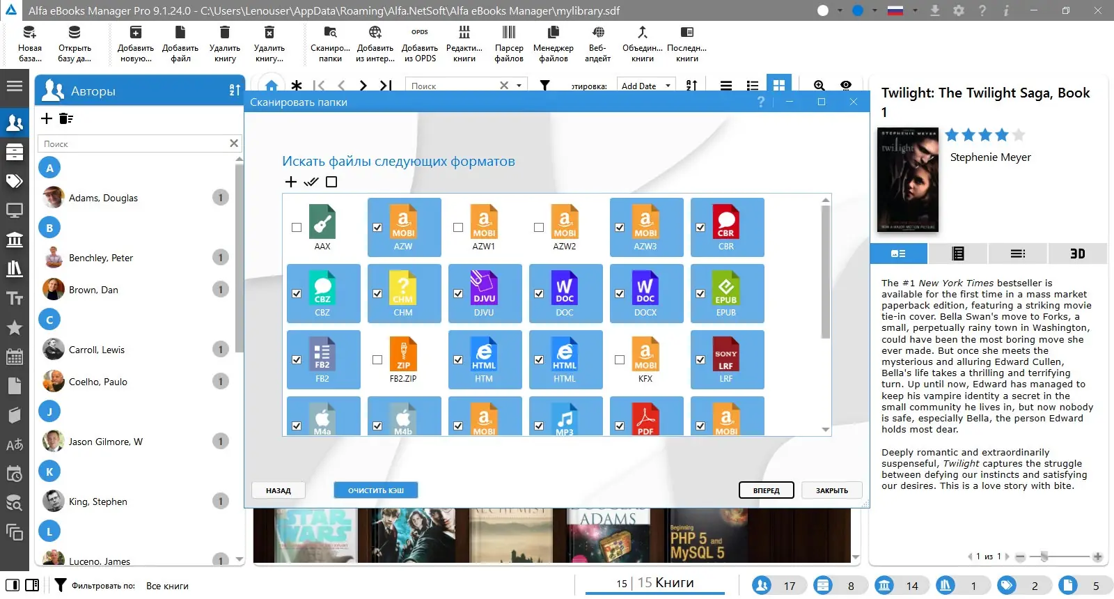 - Автоматическое сканирование компьютера для поиска и импорта электронных книг