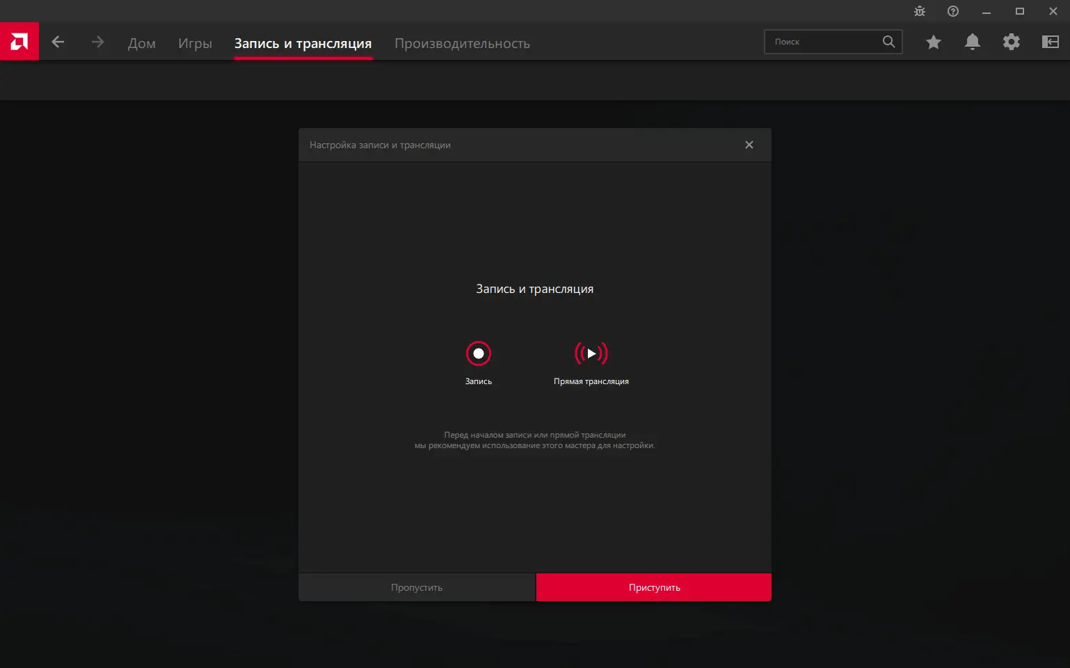 После завершённой установки программное обеспечение запускается автоматически, и его интерфейс становится доступен через иконку в системном трее. Основные вкладки включают игровые профили, настройки графики, мониторинг производительности и параметры стриминга. Пользователь может создать собственный профиль для каждой игры, включить Radeon Boost или настроить уровень резкости, а также активировать трансляцию через AMD Link с минимальными задержками. Встроенное меню доступно через комбинацию клавиш, что позволяет изменять параметры без выхода из игры.