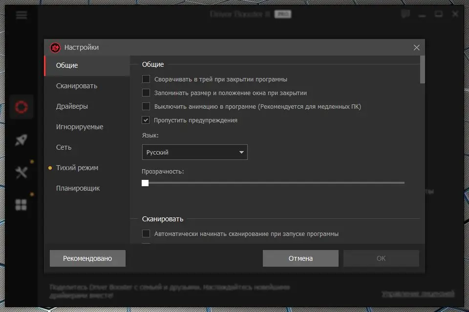 - Автоматическое сканирование системы на наличие устаревших драйверов