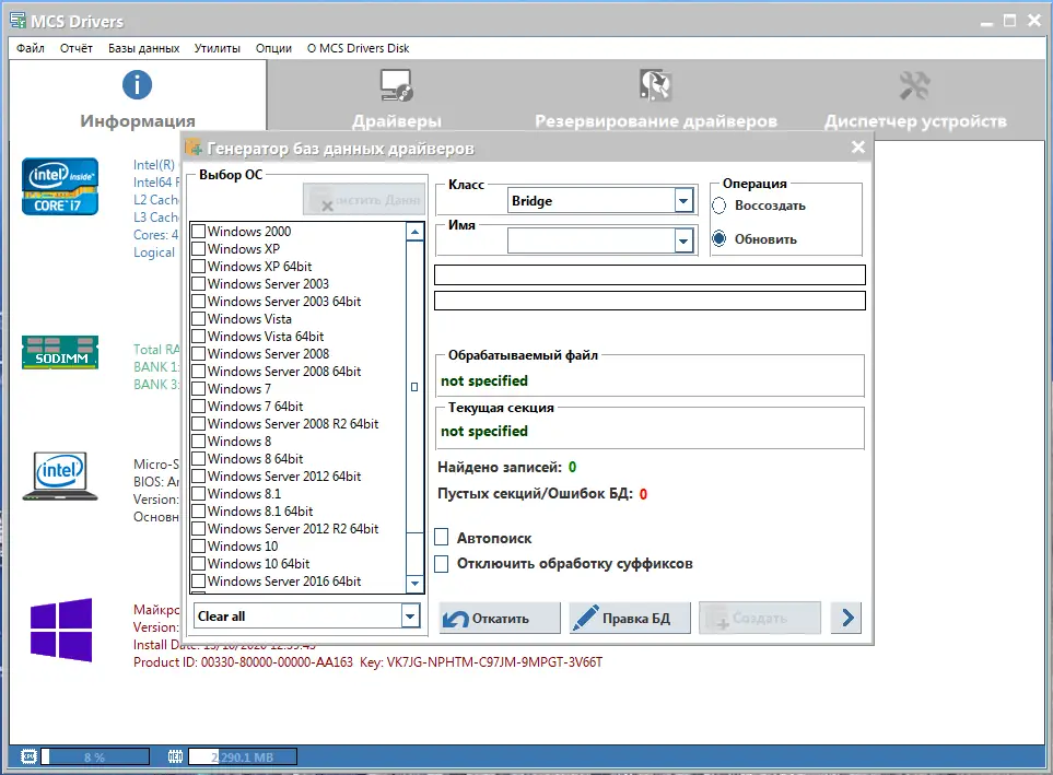 MCS Drivers Disk — это универсальный сборник драйверов, позволяющий быстро и автоматически установить необходимые компоненты для оборудования компьютера. Программа поддерживает широкий спектр устройств и операционных систем, включая последние версии Windows 11 и серверные платформы. Благодаря интеллектуальному определению оборудования, установка драйверов занимает минимальное время и не требует глубоких технических знаний.