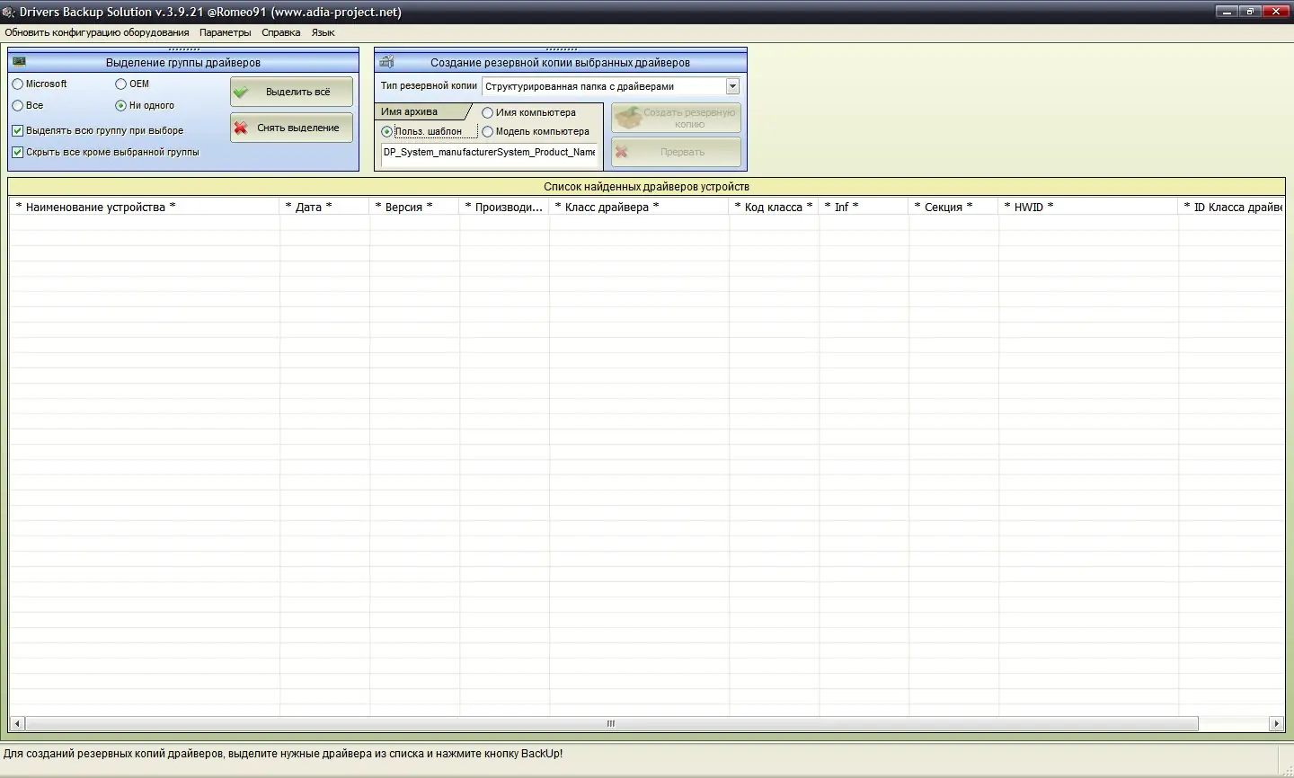 - Имеет встроенные инструменты резервного копирования драйверов