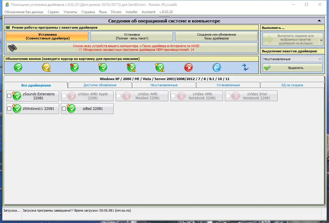 Экспертная версия SamDrivers предназначена исключительно для специалистов, понимающих последствия установки неофициальных и модифицированных драйверов.