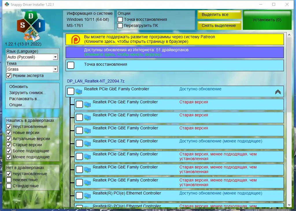 - В состав входят пакеты DP_LAN_Intel_23000, DP_LAN_Others_23000 и DP_LAN_Realtek различных версий для максимального охвата оборудования.