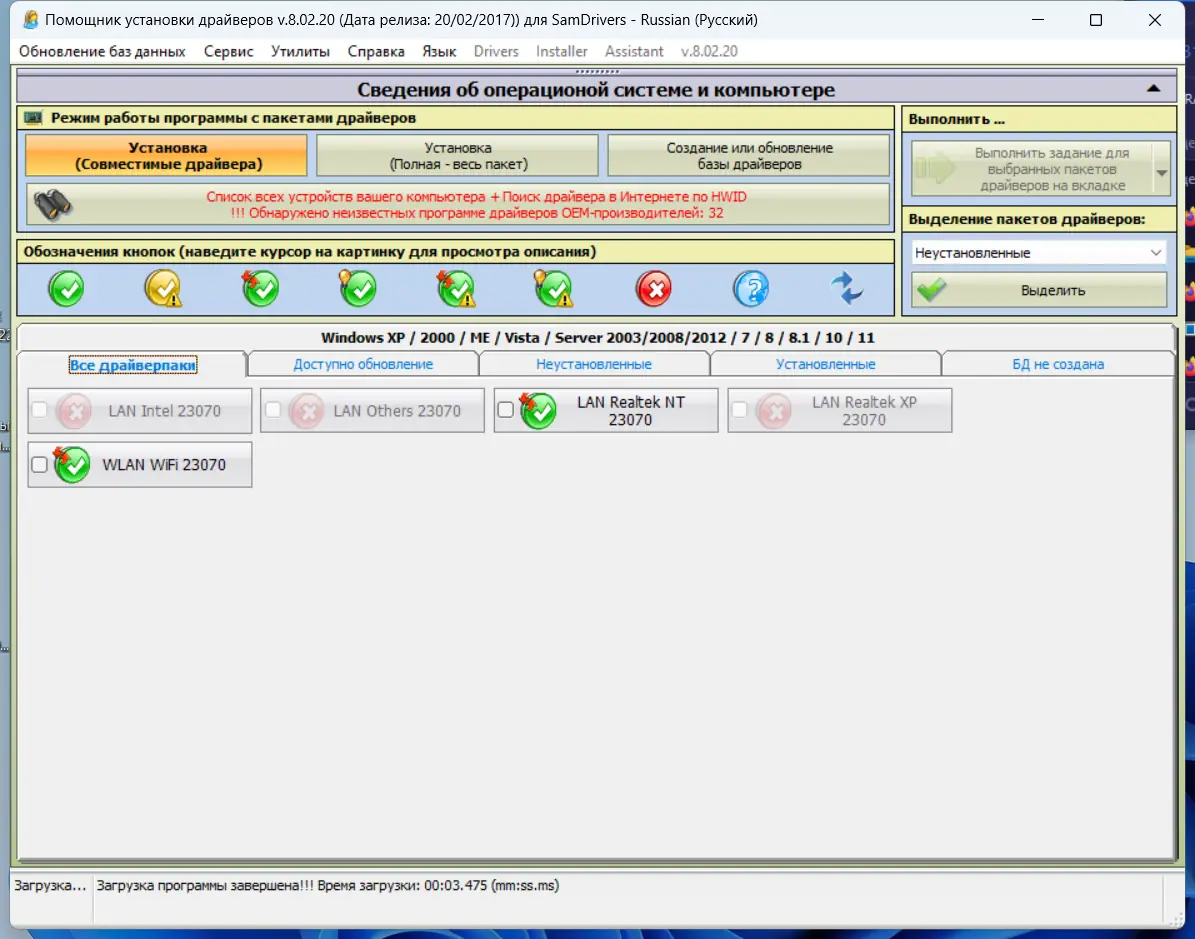 Использование SamDrivers не требует специальных навыков и начинается с запуска исполняемого файла SamDrivers_23.7_LAN.exe. Программа автоматически запускает один из встроенных установщиков, которые анализируют текущее состояние оборудования и подбирают подходящие драйверы. Процесс проходит в фоновом режиме, с минимальным участием пользователя — достаточно подтвердить установку и дождаться завершения. По окончании работы система получает полноценную сетевую функциональность, включая поддержку проводного и беспроводного соединения. Для дополнительной безопасности рекомендуется проверить контрольные суммы: CRC-32, MD5, SHA-1 и SHA-256, указанные в описании.