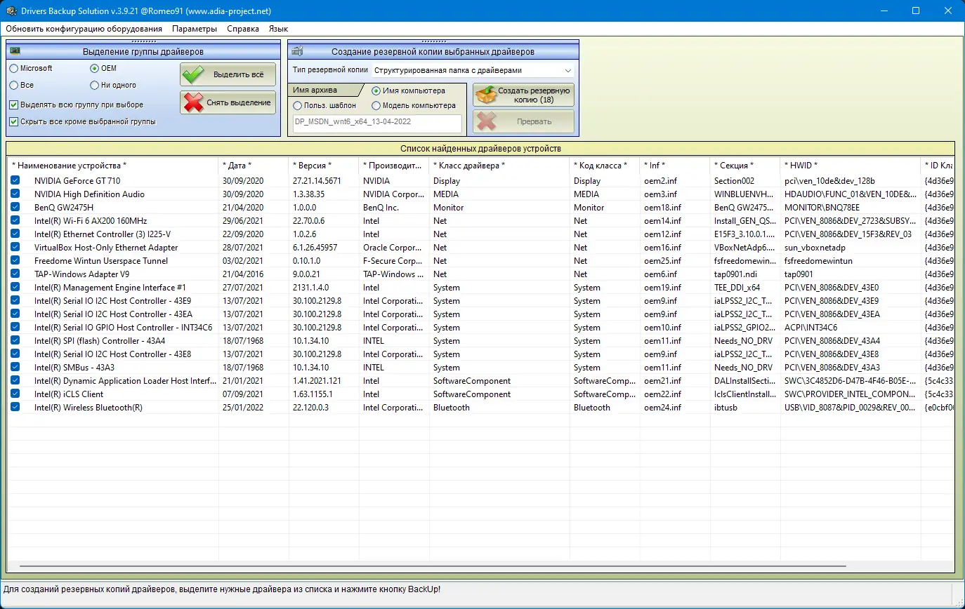 - Интеграция с несколькими установщиками: DriverPack Solution, Snappy Driver Installer и другими