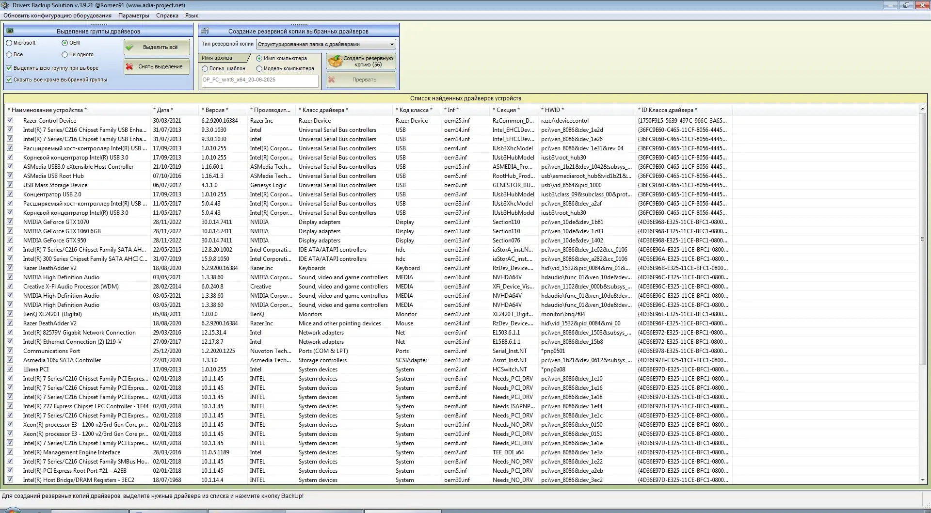 - Наличие резервного копирования текущих драйверов перед обновлением