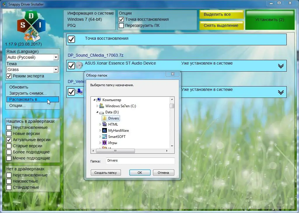 - Поддерживает работу с распакованными драйверами и позволяет создавать резервные копии