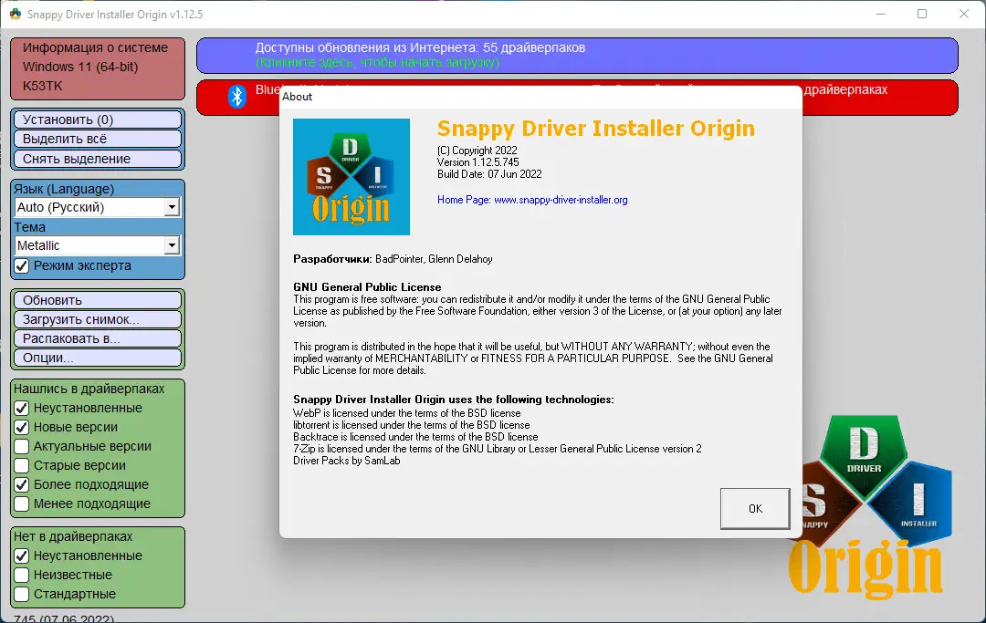 Snappy Driver Installer Origin — это портативное приложение для автоматического поиска, установки и обновления драйверов на компьютере без подключения к интернету. Программа сочетает высокую точность определения необходимых драйверов, минимальный размер и отсутствие зависимости от внешних библиотек. Благодаря продуманному алгоритму подбора, она выбирает наиболее подходящие версии, а не просто самые свежие, снижая риски нестабильной работы системы.