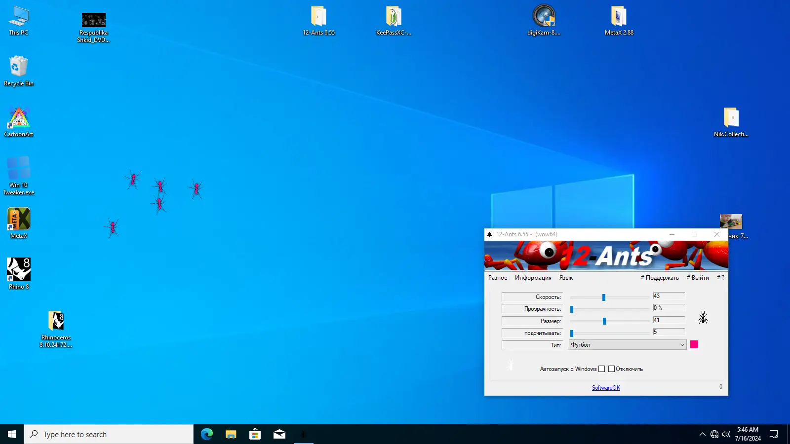 12-Ants предлагает простой, но эффективный способ добавить немного юмора в повседневную работу за компьютером. Утилита демонстрирует высокую стабильность, не нагружает систему и совместима с современными версиями Windows. Благодаря малому размеру и портативной природе, её удобно хранить на флешке и использовать при необходимости.