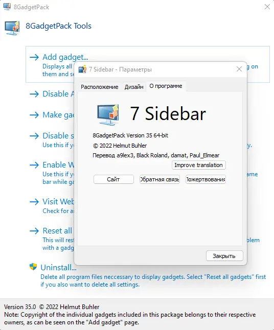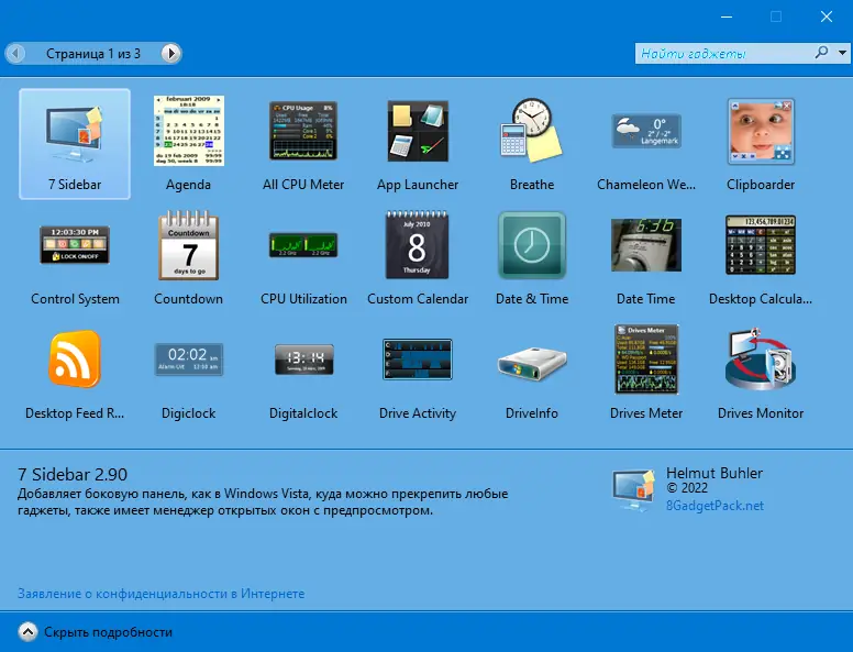 - Гибкие настройки через встроенный инструмент 8GadgetPack Tools