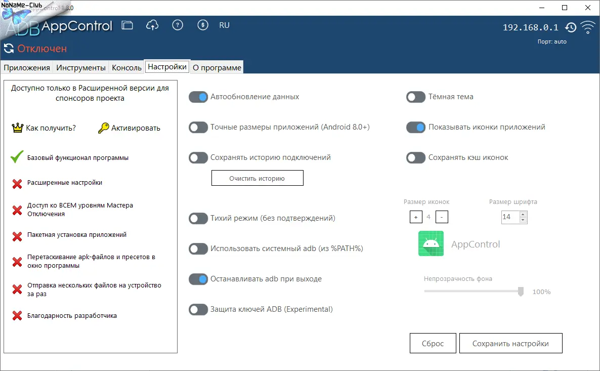 ADB AppControl — это инструмент для управления приложениями на Android-устройствах через компьютер с использованием ADB. Программа позволяет отключать системные приложения, устанавливать пользовательские, сохранять APK-файлы и работать с расширенными настройками без необходимости получения root-доступа. Поддержка современных версий Android и интуитивный интерфейс делают её удобным решением для оптимизации мобильной системы.