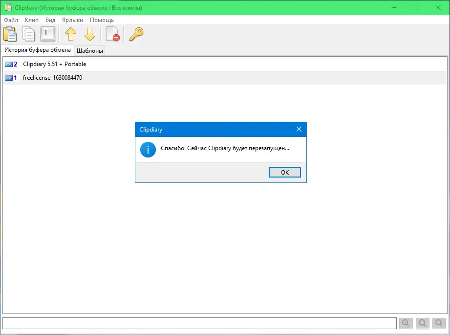 После запуска Clipdiary начинает работать в фоновом режиме и автоматически записывает каждый элемент, помещённый в буфер обмена. Доступ к истории осуществляется через горячую клавишу, по умолчанию — Ctrl+Alt+V. Открывается окно с перечнем всех сохранённых фрагментов, где можно выбрать нужный и вставить его в активное приложение. Поддерживаются быстрые операции: вставка без форматирования, копирование нескольких элементов подряд, сортировка по дате. Также доступна функция шаблонов, позволяющая сохранять часто используемые фрагменты для быстрого доступа. Версия 5.7 добавила возможность сортировки ярлыков и копирования шаблонов между базами данных.