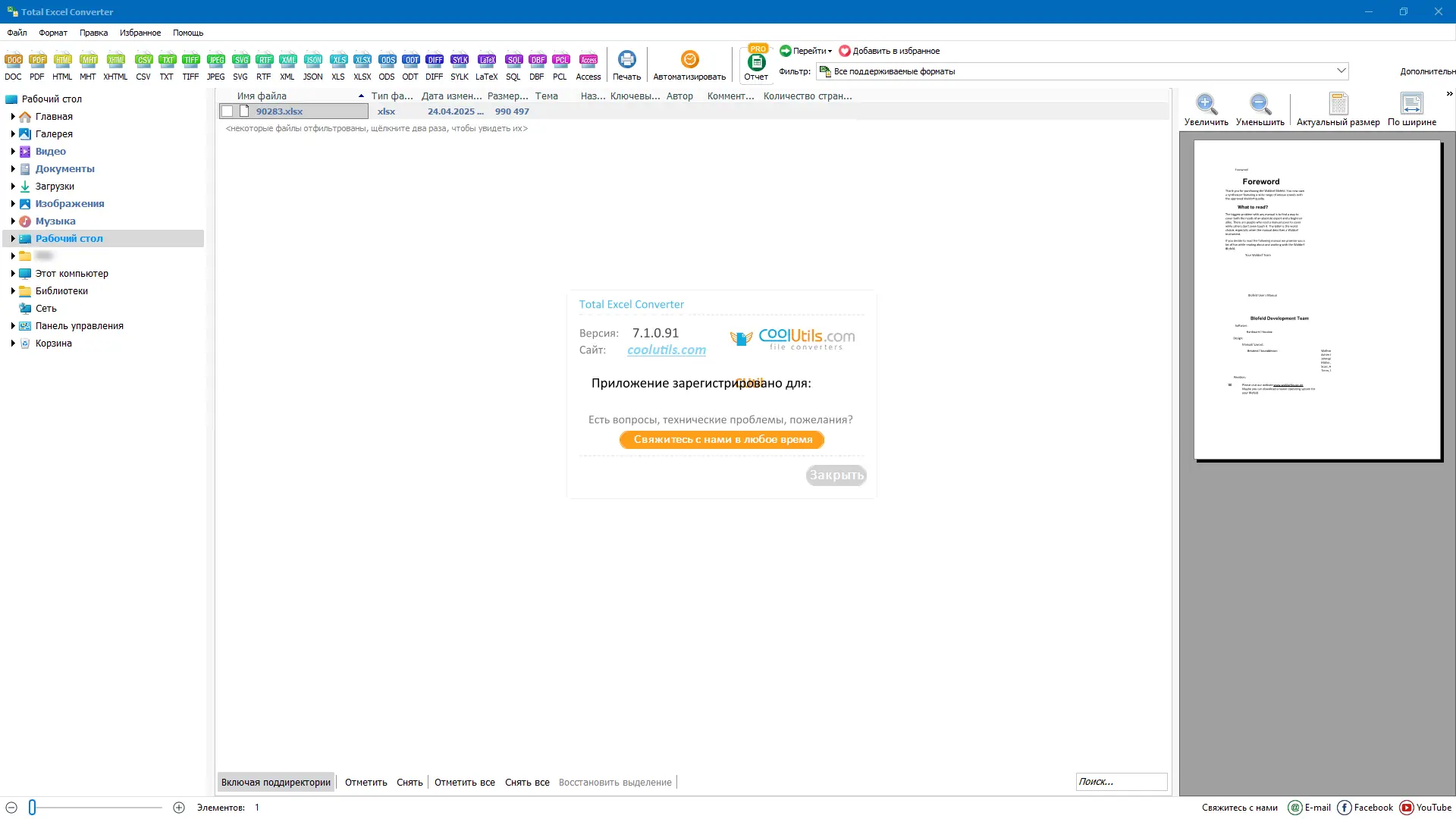 Описание CoolUtils Total Excel Converter