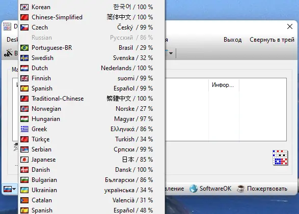 Использование программы не требует специальных знаний. После запуска DesktopOK автоматически начинает отслеживать текущее состояние рабочего стола. Для сохранения позиций иконок достаточно нажать кнопку «Save» в главном окне или через контекстное меню в системном лотке. При изменении разрешения экрана можно быстро восстановить нужный макет, выбрав соответствующий профиль. Также доступна настройка автосохранения, привязка действий к горячим клавишам и переключение языка интерфейса.