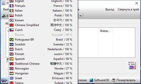 Главное преимущество DesktopOK — минимальное потребление системных ресурсов и отсутствие необходимости в установке. Программа занимает менее 300 Кб на диске и работает на всех версиях Windows, включая windows 10 и windows 11. Поддержка портативного режима позволяет использовать её с флеш-накопителей. Интерфейс переведён на множество языков, включая русский, и допускает смену языка без перезапуска.