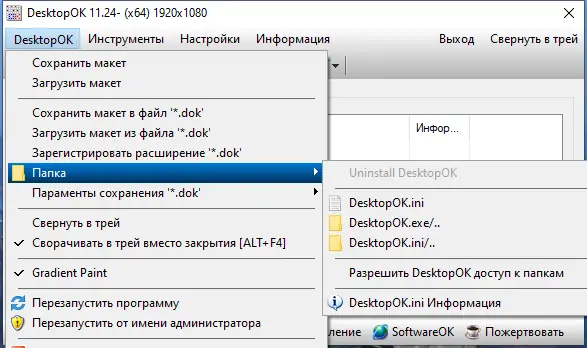 Программу можно скачать с официальный сайт в портативной версии, не требующей установки. Файл настройки DesktopOK.ini создаётся автоматически, а для переносного использования достаточно разместить его в одной папке с исполняемым файлом. Утилита поддерживает все современные конфигурации Windows и идеально подходит для повседневного использования.