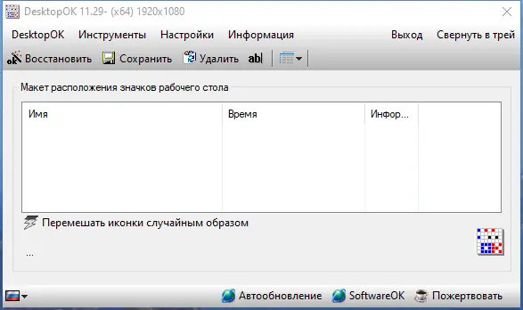 DesktopOK — портативная утилита для Windows, позволяющая сохранять и восстанавливать расположение иконок на рабочем столе. Программа не требует установки, работает в фоне и автоматически фиксирует изменения при смене разрешения экрана. Идеально подходит для пользователей, часто подключающих внешние дисплеи или проекторы.