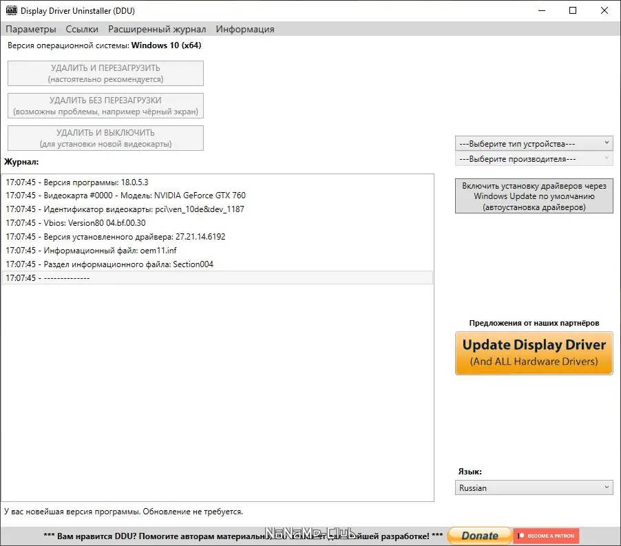 Display Driver Uninstaller — это специализированная утилита для полного удаления драйверов видеокарт и аудиоустройств, включая решения от AMD, NVIDIA и Intel, а также звуковые драйверы Realtek и Sound Blaster. Программа очищает систему от всех следов установленных драйверов, включая файлы, папки и ключи реестра, возвращая состояние системы к изначальному, как будто драйверы никогда не устанавливались. Инструмент особенно полезен при возникновении конфликтов, сбоях в работе графики или необходимости чистовой установки новых версий драйверов.