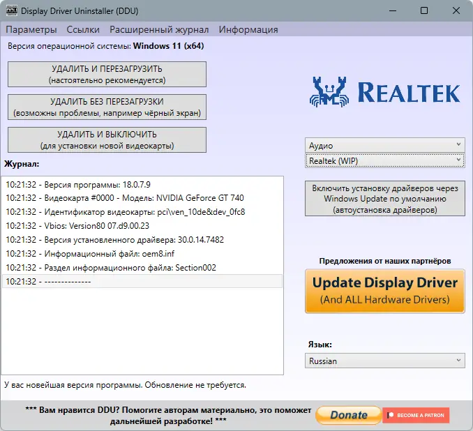 Display Driver Uninstaller — это специализированная утилита, предназначенная для полного удаления драйверов видеокарт и звуковых решений из операционной системы. Программа эффективно удаляет остаточные файлы, записи реестра и папки, оставленные после деинсталляции драйверов AMD, NVIDIA или Intel. Особенно полезна при возникновении конфликтов, сбоях в работе графики или перед установкой новых версий драйверов.