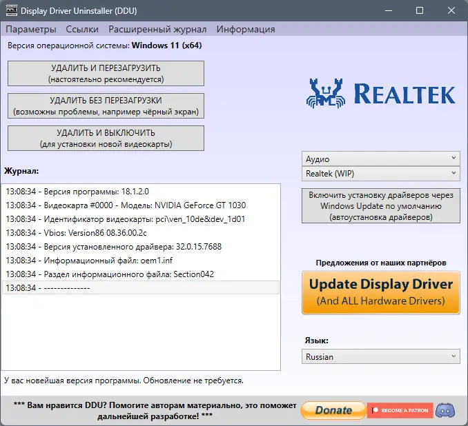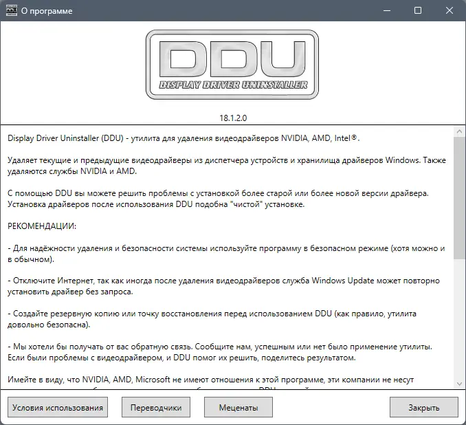 Display Driver Uninstaller — это специализированная утилита для полного удаления драйверов видеокарт и аудиоустройств из операционной системы, оставляя систему в чистом состоянии, как после свежей установки Windows. Программа эффективно удаляет файлы, папки и записи реестра, связанные с драйверами AMD, NVIDIA, Intel, а также аудиодрайверами Realtek и Sound Blaster. Подходит для случаев, когда стандартное удаление через «Программы и компоненты» не даёт результатов или требуется глубокая очистка перед установкой новых версий драйверов.
