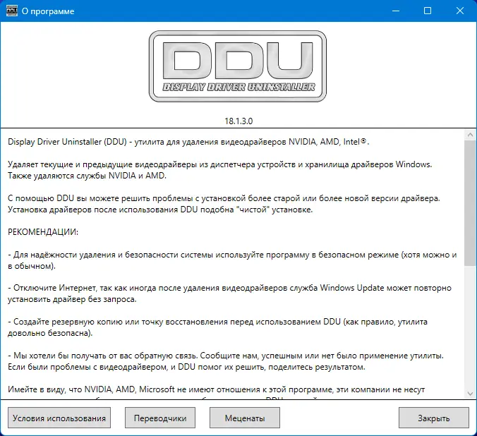 Display Driver Uninstaller — это мощная утилита для полного удаления драйверов видеокарт и звуковых решений из операционной системы. Программа эффективно удаляет остаточные файлы, папки и записи реестра, оставшиеся после деинсталляции драйверов AMD, NVIDIA и Intel. Особенно полезна при сбоях в работе графики или при подготовке к чистой установке новых версий драйверов.