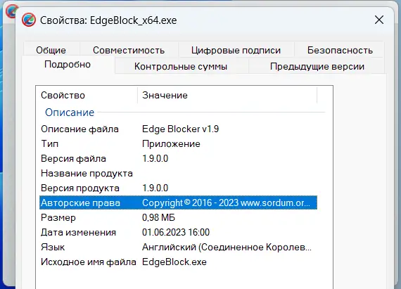 - Ограниченный функционал — программа предназначена исключительно для блокировки Edge