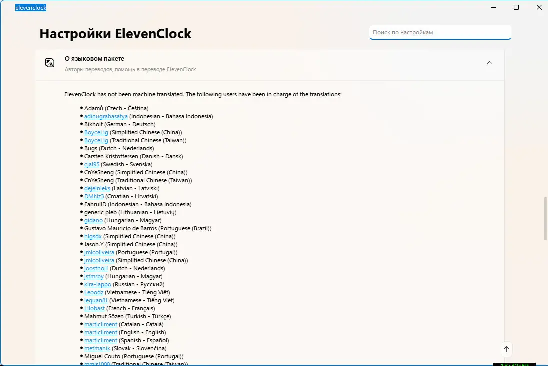 Программа доступна для использования на различных версиях Windows, включая актуальную windows 11 скачать её можно бесплатно. Процесс установки прост и не требует сторонних компонентов. Благодаря лицензии Apache 2.0, ElevenClock можно свободно распространять и модифицировать.