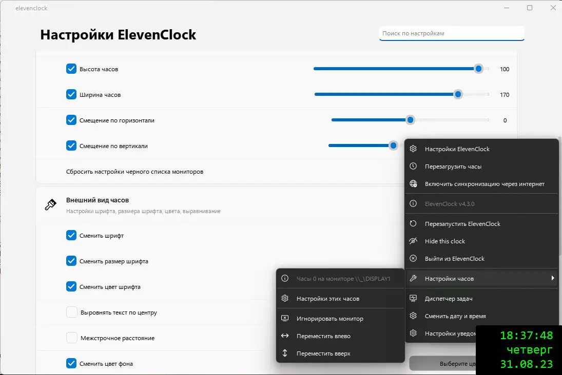 ElevenClock разработан как альтернатива стандартным часам Windows 11, которые не поддерживают индивидуальные настройки и не отображаются на всех подключённых дисплеях. Эта утилита восполняет пробел, предлагая пользователям полный контроль над внешним видом и поведением часов. Программа работает в фоновом режиме, не нагружая систему, и обеспечивает точное отображение времени с автоматической синхронизацией через интернет.