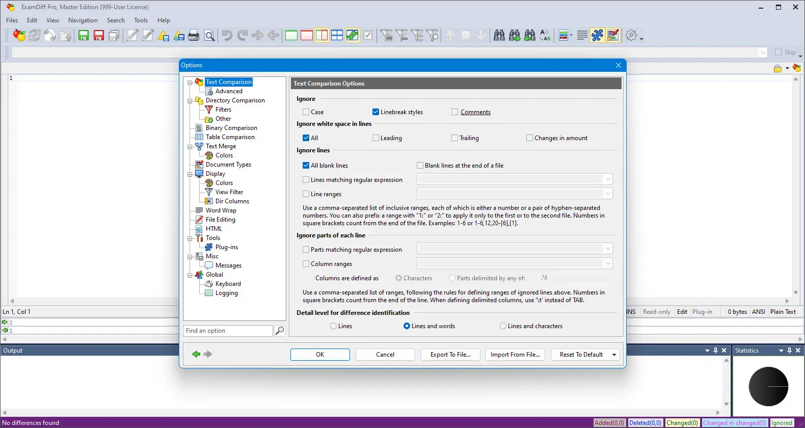 Для начала работы необходимо открыть два файла или указать две папки для сравнения через основное меню или с помощью перетаскивания. Программа автоматически анализирует содержимое и выделяет различия цветом, показывая добавленные, удалённые или изменённые строки. Пользователь может переходить между расхождениями с помощью горячих клавиш, копировать фрагменты из одного файла в другой, а также сохранять снимок каталога для последующего сравнения с новым состоянием. Поддержка командной строки позволяет встраивать ExamDiff Pro в скрипты и автоматизированные процессы сборки.