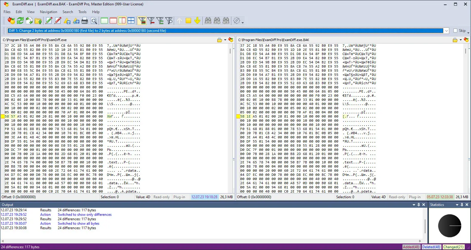 ExamDiff Pro — это высокоточное приложение для сравнения текстовых и бинарных файлов, а также каталогов, разработанное с учётом потребностей программистов и системных администраторов. Программа поддерживает широкий спектр форматов, обеспечивает подсветку синтаксиса, работает с Unicode и предлагает инструменты для детального анализа различий. Её интерфейс интуитивно понятен, а функционал — исключительно практичен для повседневного использования в разработке и тестировании.