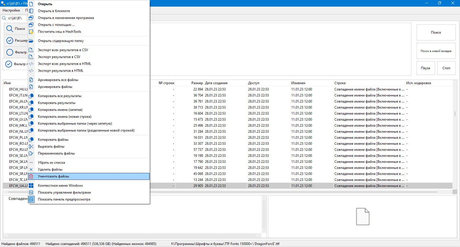 Пользоваться FileSeek просто: после запуска нужно указать папку или диск для поиска, ввести запрос и выбрать тип поиска — по имени, содержимому или с помощью регулярных выражений. Результаты отображаются в реальном времени, с возможностью перехода к файлу, открытия в связанной программе или копирования пути. Дополнительно можно настроить действия по двойному щелчку, фильтровать по типу файлов или дате изменения, а также сохранять часто используемые параметры как профили. Для опытных пользователей доступна подсветка строк до и после найденного фрагмента, что упрощает анализ контекста.