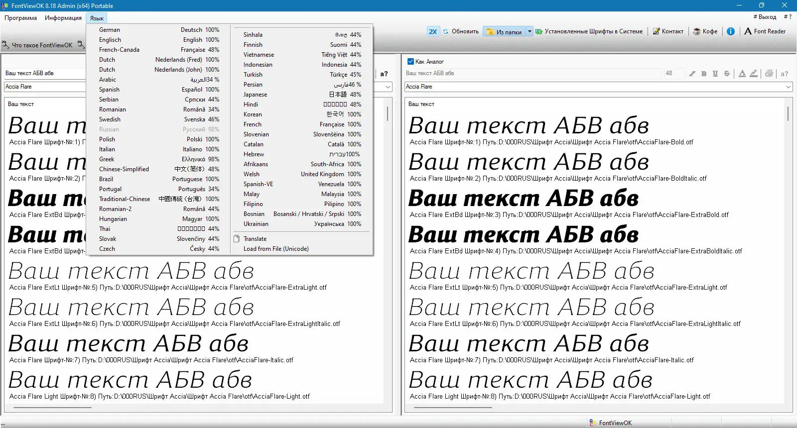 FontViewOK позволяет визуализировать текст в различных типах шрифтов без необходимости запуска графических редакторов или текстовых процессоров.