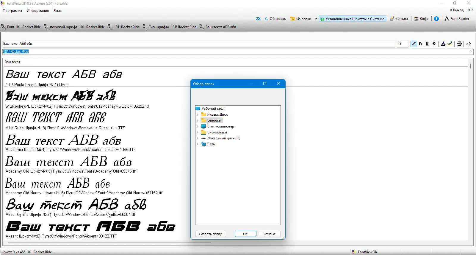 FontViewOK позволяет эффективно подбирать шрифты для проектов без необходимости запуска тяжелых графических редакторов.