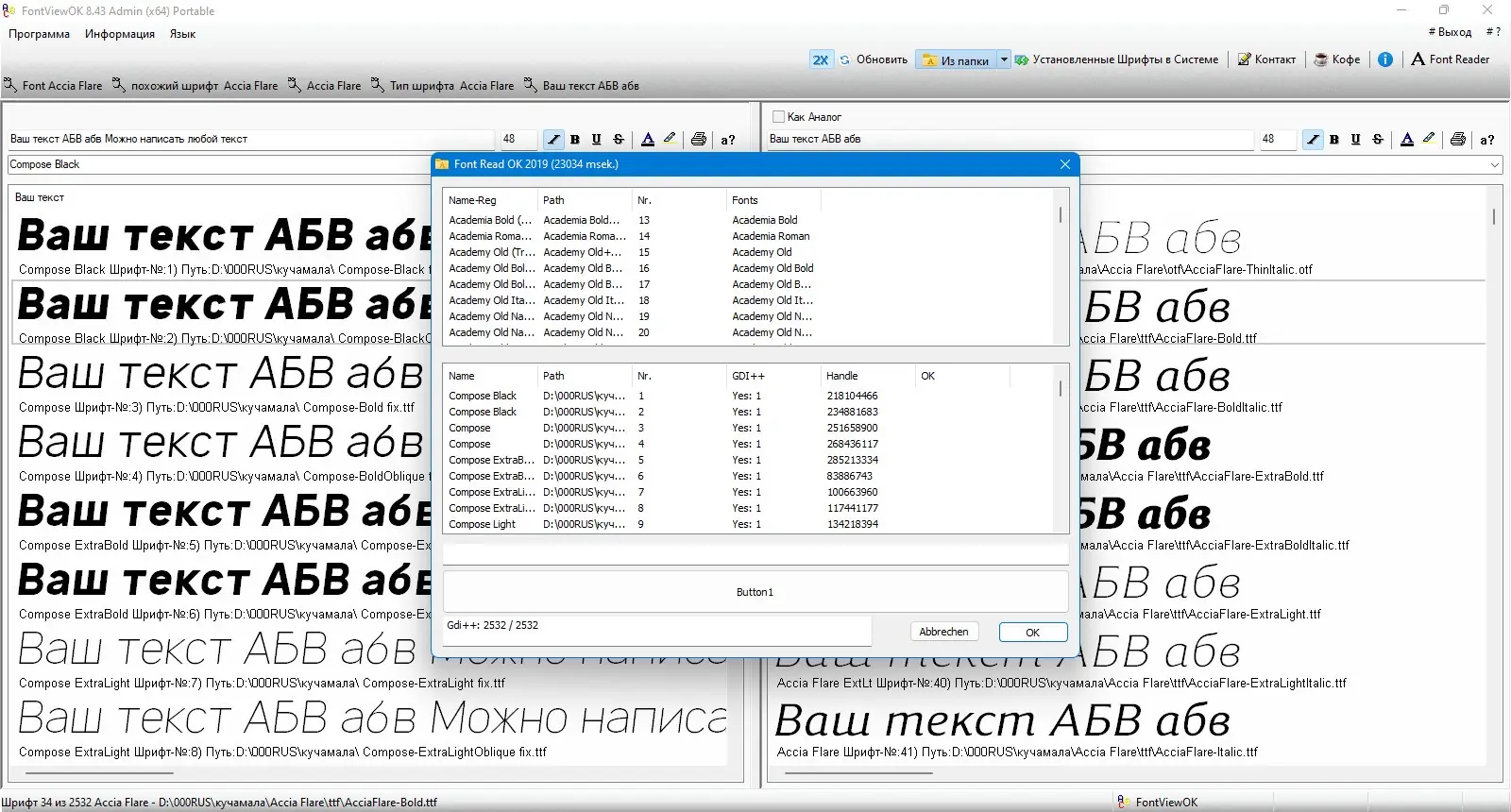 - Двойное окно для параллельного сравнения двух разных шрифтов
